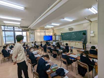 社会科の授業の様子です。大阪市にある工場について考えていました。その中で、パンの作り方について話し合っていました。今は家庭でもパン作りができるので、作り方をていねいに説明していました。さすがですね。