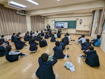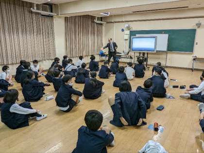 家庭科の出前授業を受けました。リクシルの方が2人来校され、家庭内にひそむ危険についての授業をしてくださいました。階段やお風呂、キッチン等、家庭生活の中のいろいろな危険について教えていただきました。お二人の先生方ありがとうございました。