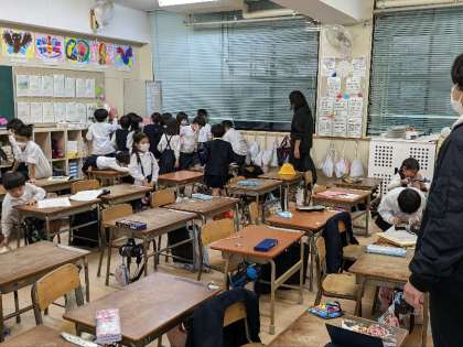 学級活動の授業の様子です。プリントの整理整頓をしていました。配布物をきちんとそろえてファイルに閉じることは、大切なことです。もうすぐ学期末で持って帰ります。家でもきちんと保管しておきましょう。