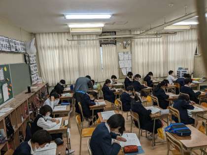 理科の授業の様子です。復習テストをしていました。今まで学んできたことを確認するためのテストです。小学校で学んだことは中学校での基礎になるので役立ちます。しっかり思い出しておきましょう。