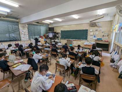 書写の授業の様子です。教科書をていねいに書写ノートに写していました。時間をかけてじっくりと書きましょう。それが上達するこつです。がんばりましょう。