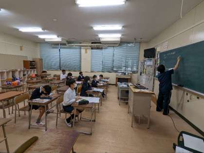 算数科の授業の様子です。分数の単元を習熟度別少人数で学習をしていました。普段使うことがないので分数は難しいです。理解できるまでしかっりがんばりましょう。