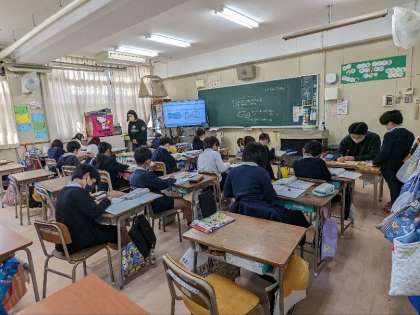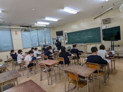 算数科の授業の様子です。習熟度別少人数で学習をしていました。□(四角)を使った式を学んでいました。方程式の学習の第一歩です。しっかり覚えておきましょう。
