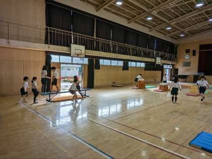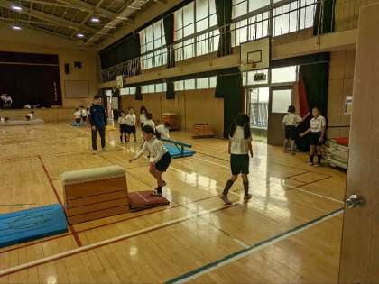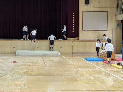 体育の授業の様子です。講堂で器械を使った運動をしていました。日に日に上達しています。運動の経験が能力を高めていきます。いろいろな運動にチャレンジしていきましょう。