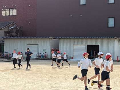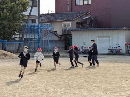 体育の授業の様子です。運動場で持久走をしていました。12月に入っての体力向上の取り組みです。7分間走にチャレンジしていました。持久走は自分との戦いです。目標を立てて、それをクリアできるようにがんばりましょう。