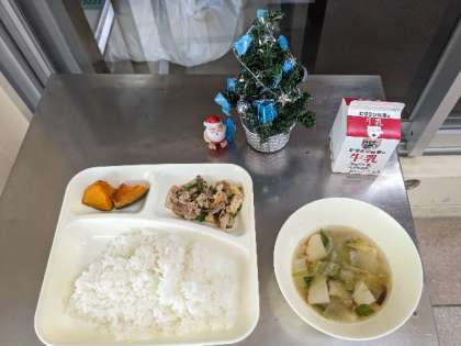 今日の献立は、豚肉と干しずいきのみそ煮・うすくず汁・焼きかぼちゃの甘みつかけ・ごはん・牛乳です。