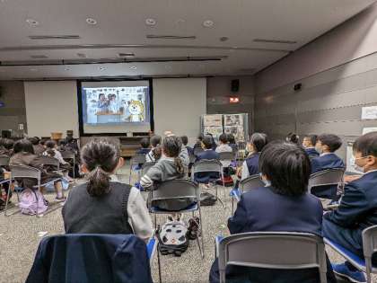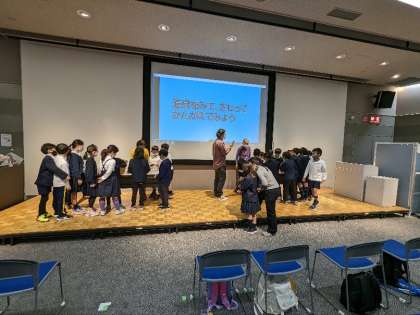 ホールで映像を見たあとに、体験活動をしました。