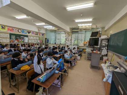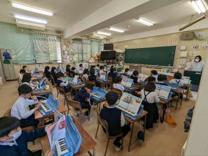 音楽の授業の様子です。鍵盤ハーモニカでしろくまさんのジェンカをふいていました。1音ずつていねいに、一生懸命に演奏する姿がいとおしかったです。