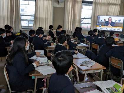 社会科の授業の様子です。NHKフォースクールを見ていました。情報の学習でした。こ