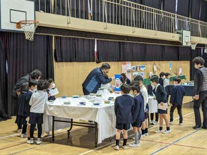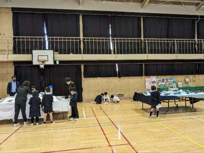 図画工作科の授業の様子です。陶芸展を見学していました。他の学年の作品を見たり、友達に渡すいいねカードを 書いていました。1年生にとっては初めての陶芸展です。上級生の作品を見てどんなことを思ったのでしょうね。