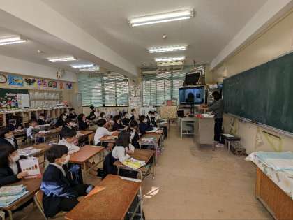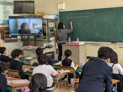 算数の授業の様子です。水のかさを比べていました。実際にコップに水を入れて、かさを比べたので、分かりやすかったと思います。楽しそうに授業を受けていました。