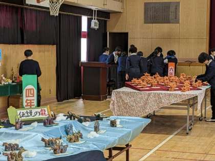 図画工作科の授業の様子です。陶芸展を見学していました。6年生にとっては最後の陶芸展です。自分達の作品や他の学年の作品を楽しそうに見ていました。今日も思い出の1ページとなりました。子ども達は、今まで展示した自分の作品を覚えているのでしょうか?