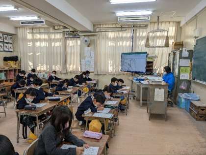 社会科の授業の様子です。テストをしていました。今まで身につけてきた知識を活かしてがんばりましょう。冬休みまであと1週間です。最後のひとふんばりです。