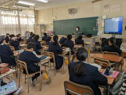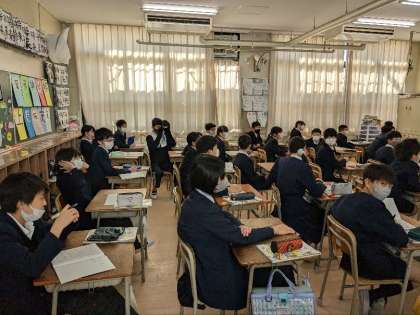 家庭科の授業の様子です。年末年始の家庭生活について調べていました。おせち料理込められた意味なども考えていました。帰ったら由来などを聞いてみてください。