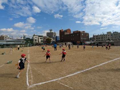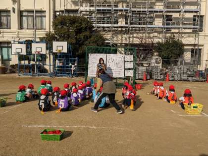 5校時に運動場で、体育の授業研究会を行いました。チームに分かれてたからはこびゲームをしました。作戦を考え試合をしました。寒い中でしたが、多くの先生が見守る中楽しく運動をしていました。