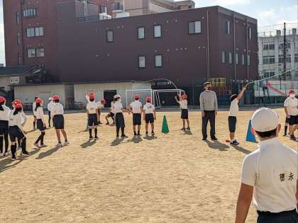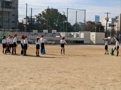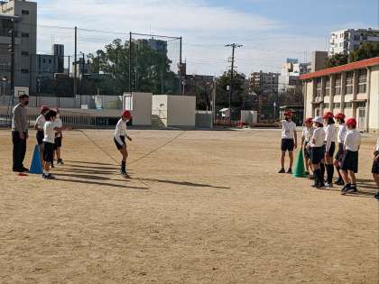 体育の授業の様子です。運動場で持久走の続いて長縄跳びをしていました。この運動はタイミングよく跳ぶことが求められます。慣れることも大切ですね。休み時間にも練習祖ましょう。