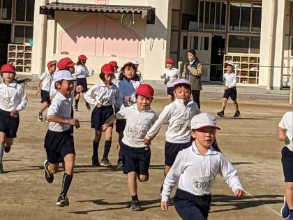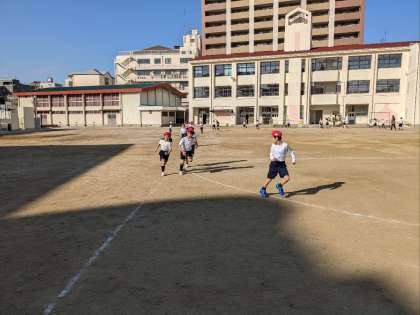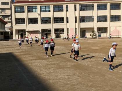 2年生の体育の授業の様子です。持久走をしていました。みんな自分のペースで走っていました。同じペースで走り続けるのは、簡単なことではありません。目標をもってがんばっていました。