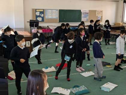 音楽の授業の様子です。曲に合わせて、体を動かしていました。ノリノリでみんな楽しく歌っていました。