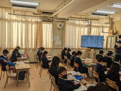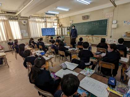 社会科の授業の様子です。大阪市の歴史について学習をしていました。年表を見ながら、出来事を発表していました。