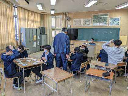 民族クラブの活動の様子です。今日は民族クラブ小中交流会で使う名前カードを完成させ、そのあと動物カルタを行いました。みんなしっかりカルタを取ることができました。