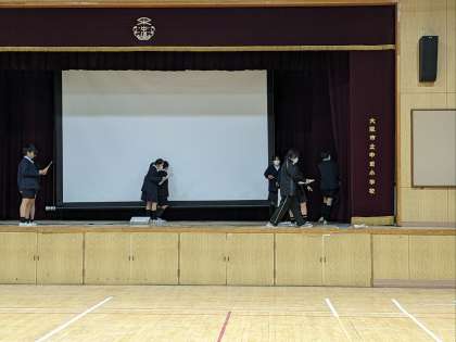 環境委員会・集会委員会の活動の様子です。講堂で集会の準備をしていました。いい集会になるといいですね。