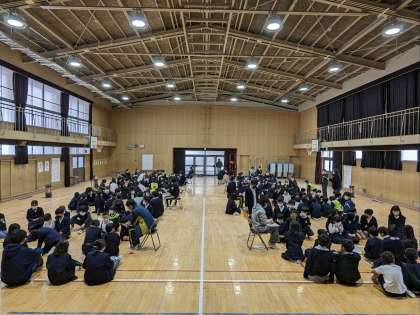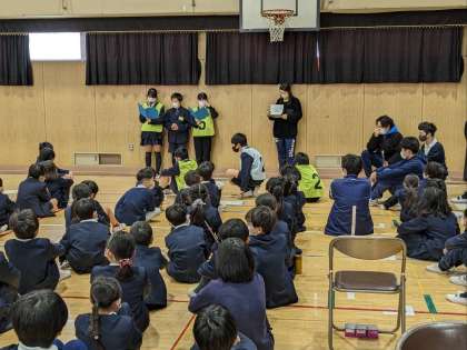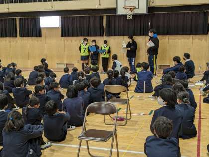 ルール説明・児童代表の言葉の後、なかよし班対抗で試合をしました。各自が2試合ずつ行いました。みんな今日まで一生懸命句を覚えてきました。実力を発揮してがんばりましょう。