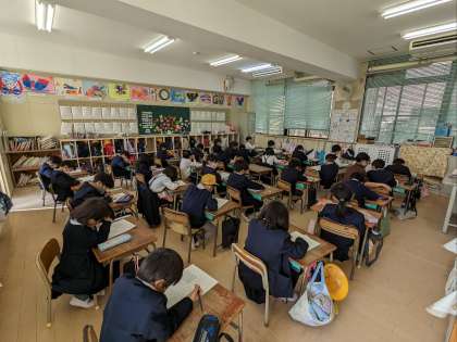 1年生の算数のテストの様子です。100までの数についてのテストでした。位が大きくなるので難しかったですが、みんな楽しくがんばっていました。いい結果出るといいですね。