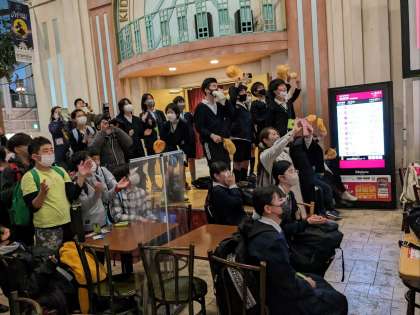 まもなく集合時間です。ダンスと声援をおくる様子です。最後に買い物もしています。
