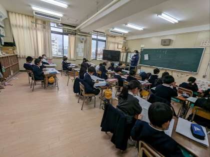 国語の授業の様子です。テストの答え合わせをしていました。間違えたところはきちんと直して覚えておきましょう。このことはとっても重要です。