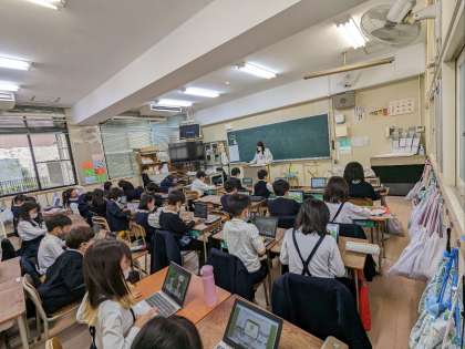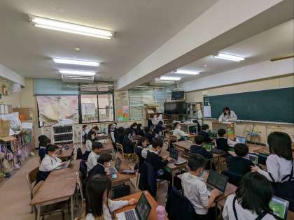 学級活動の授業の様子です。パソコンを活用していました。2年生も日常的にパソコンを使っています。授業で使うのが当たり前の時代になってきているのですね。