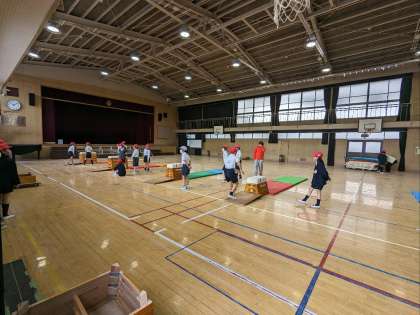 体育の授業の様子です。跳び箱をしていました。それぞれが台を選んで練習していました。友達が飛んでいる様子を見て、アドバイスを送っていました。素晴らしいですね。