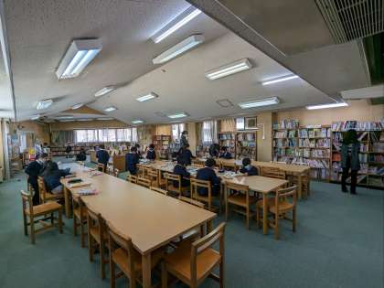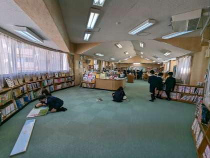 読書活動の様子です。図書館で読書を楽しんでいました。絵のない字だけの絵本があるのを知っていますか?それを読んでいる子がいました。いろいろな本があるものですね。