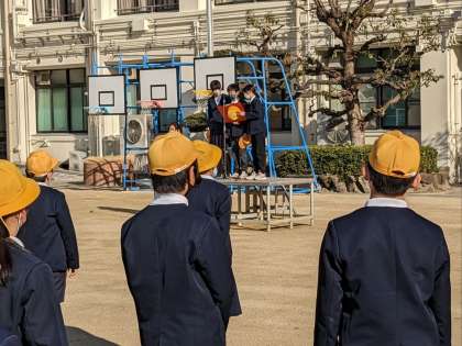 姿勢ストレッチに引き続き、校長先生から、3月は学年の締めくくりの月になるので、がんばろうとのお話がありました。