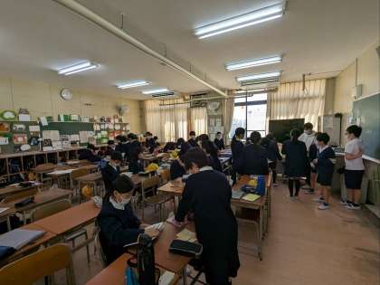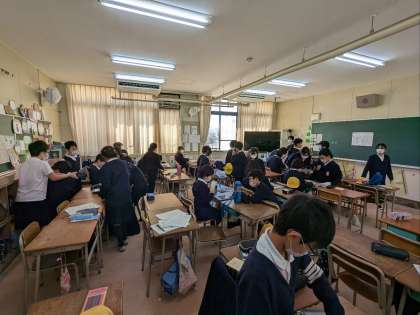 学級活動の様子です。卒業お祝い集会の準備をしていました。在校生の代表として6年生をを祝うため、活動していました。具体的な中身については秘密です。