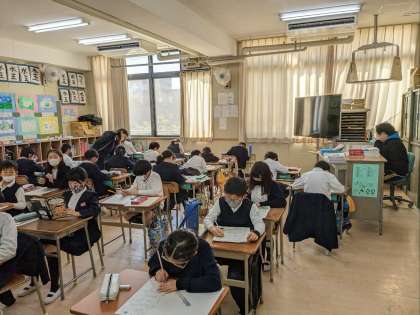 テストの様子です。静かに集中して取り組んでいました。明日からは3月ですね。学年のまとめの月です。テストも多くなりますね。がんばりましょう。