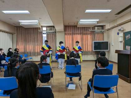 民族クラブの修了式を行いました。卒業生・在校生に修了証が贈られた後、校長先生・ソンセンニム・来賓の方々・担当の先生からお祝いの言葉が贈られました。最後に卒業生からの言葉・在校生からの贈る言葉が披露されました。思い出に残る素晴らしい修了式になりました。