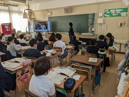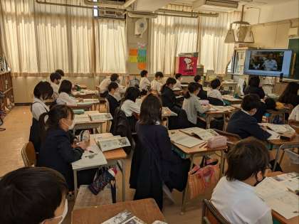 社会科の授業の様子です。柏原市のワイン作りについて学んでいました。映像資料もあり、とっても分かりやすいです。大阪産の柏原ワイン有名ですね。20歳になったら飲んでみてください。