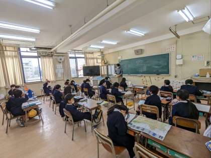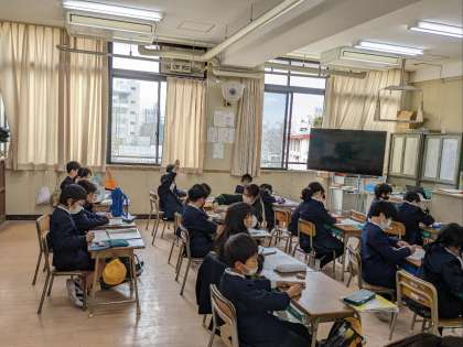 社会科の授業の様子です。テストをしていました。もう学年末になりましたね。まとめの時期なので、テストも増えるでしょう。がんばりましょう。