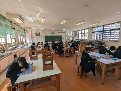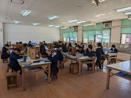 図画工作科の授業の様子です。版画の授業でした。板を彫り込んでいました。もうすぐ完成です。刷るのが楽しみですね。けがをしないように気をつけましょう。