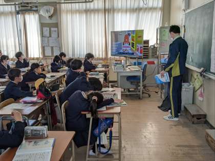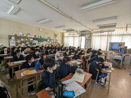 理科の授業の様子です。電磁石の単元のNHKフォースクールを視聴していました。楽しく学べるので、知識の習得に役立ちます。映像も重要なアイテムです。