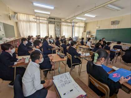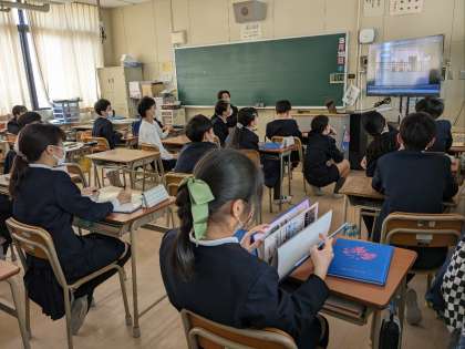 小学校最後の授業です。映像を見て、1年間を振り返っていました。今日の授業は一生の思い出としてみんなの心に残るでしょう。