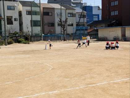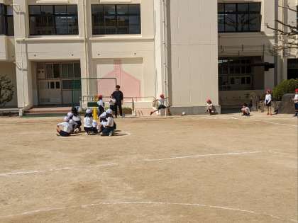 体育の授業の様子です。キックベースボールをしていました。回を重ねるごとにみんなが上手になって、今日は接戦でした。WBCの熱戦で世の中が盛り上がる中、ベースボール形式のゲームも、盛り上がっています。