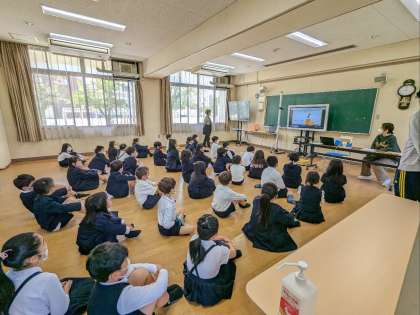 発育測定の様子です。保健指導を受けています。健康診断のビデオを見ています。大切な体のことをしっかりと学んでください。