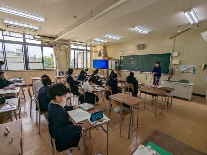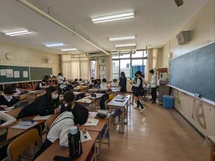 算数の授業の様子です。習熟度別少人数で学習をしていました。分数の割り算の学習をしていました。分数は実際の生活で使うことが少ないので難しいですが、しっかりがんばりましょう。