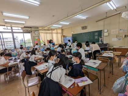 国語の授業の様子です。グラフから読み取ったことに、自分の考えを交えて発表していました。難しいですが読解力の付く内容です。がんばりましょう。