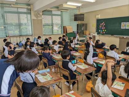 算数の授業の様子です。10までの数を学んでいました。手を大きく動かして、書き方を確認しながら数えていました。