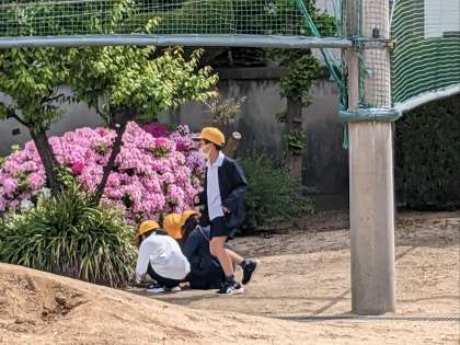 理科の授業の様子です。校庭で生き物を探していました。虫好きの4年生なので、ダンゴムシをすぐに見つけていました。運動場の東にある池では、ヤゴも見つけました。ヤゴは、学級で飼うそうです。大切に育てましょうね。