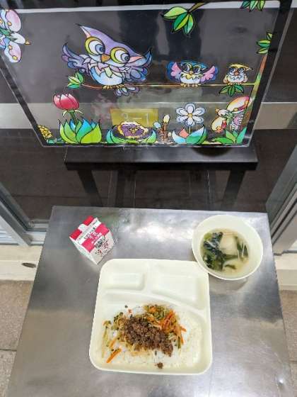 今日の献立は、ビビンバ・トック・牛乳です。