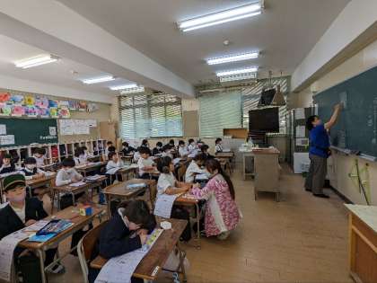 国語の授業の様子です。新出漢字の学習でした。書き順を全員で指で確認していました。しっかり覚えておきましょう。