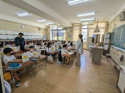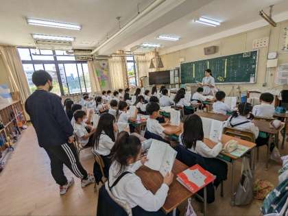 国語の授業の様子です。「すいせんのラッパ」を群読していました。声をそろえて気持ちを込めて、上手に読んでいました。